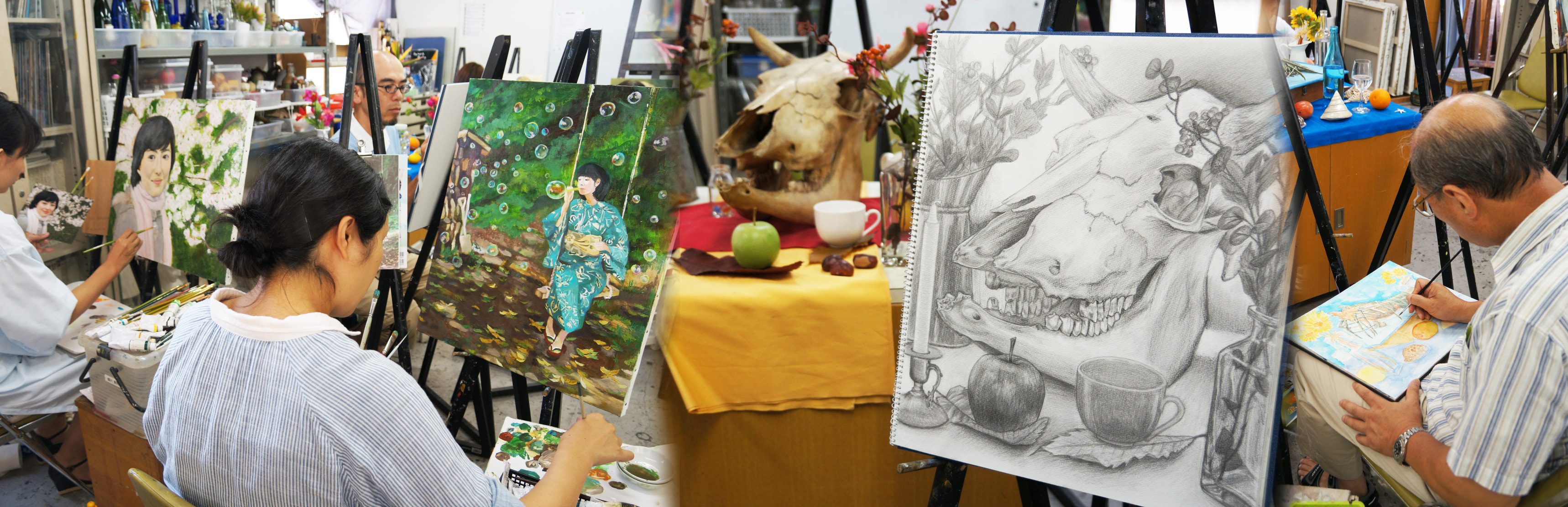 水彩画、油彩画、デッサン、色鉛筆画、アクリル画、パステル画など