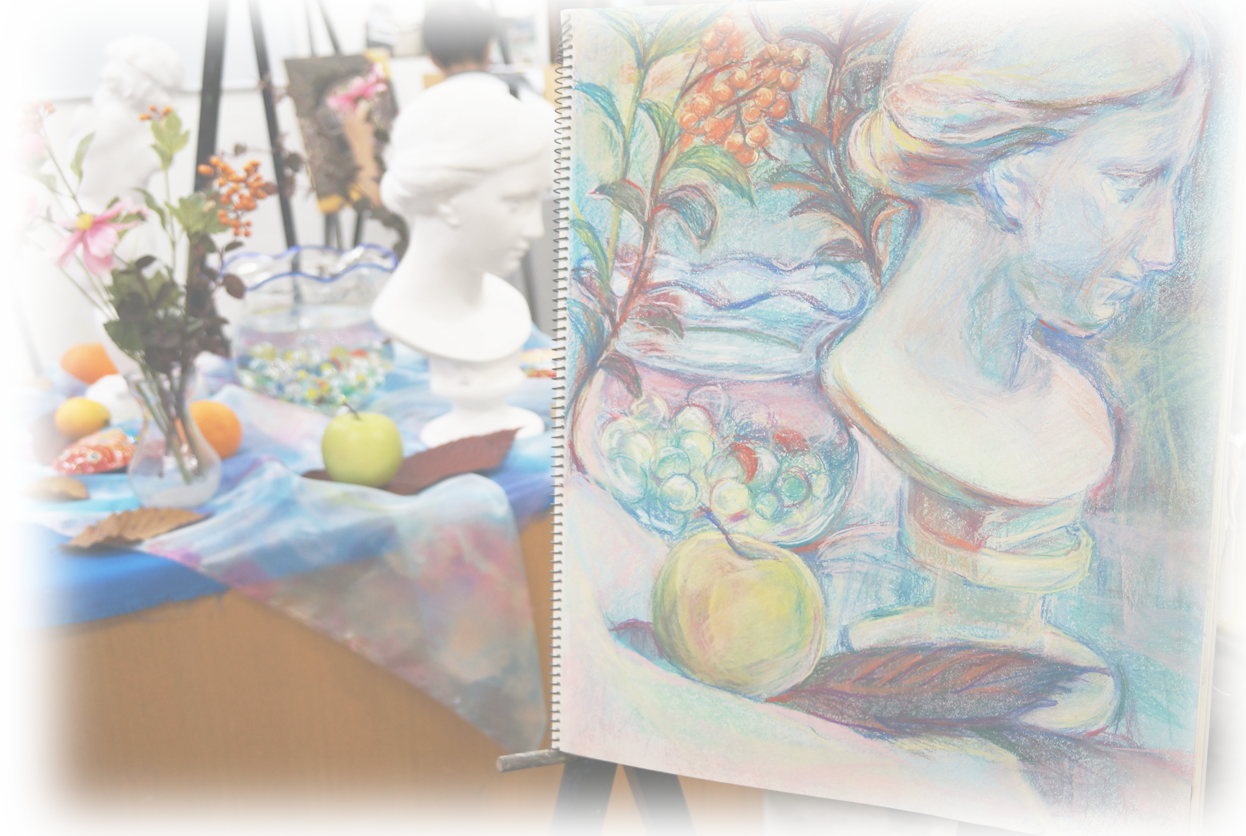 ● 授業内容・・・モデルさんを描きます。4ヶ月毎にモデルさんとポーズが替わります。