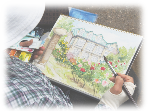 室内で描くのとは違い、日射しやその場の雰囲気、臨場感を感じながら新鮮な気持ちで描けるのが魅力でしょう。